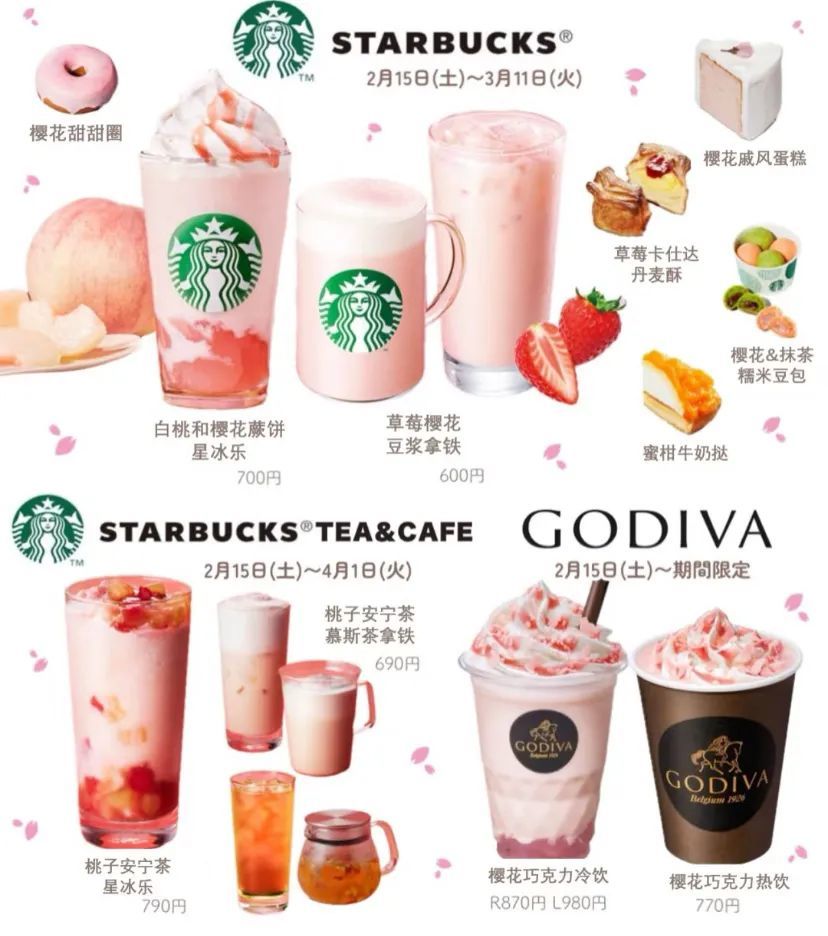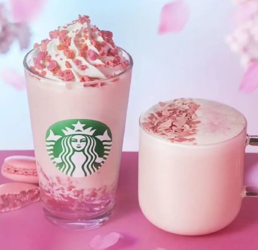 本年的樱花季星巴克还十分推出了草莓樱花豆乳拿铁。