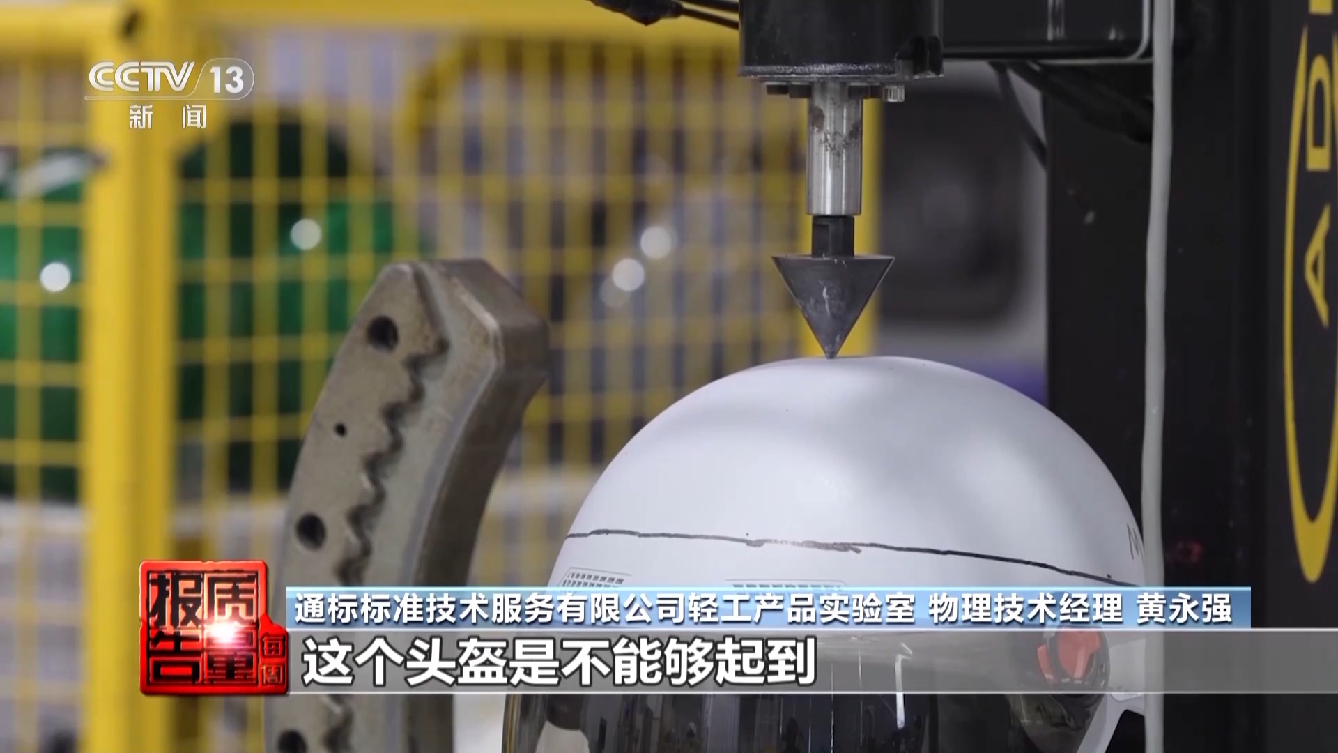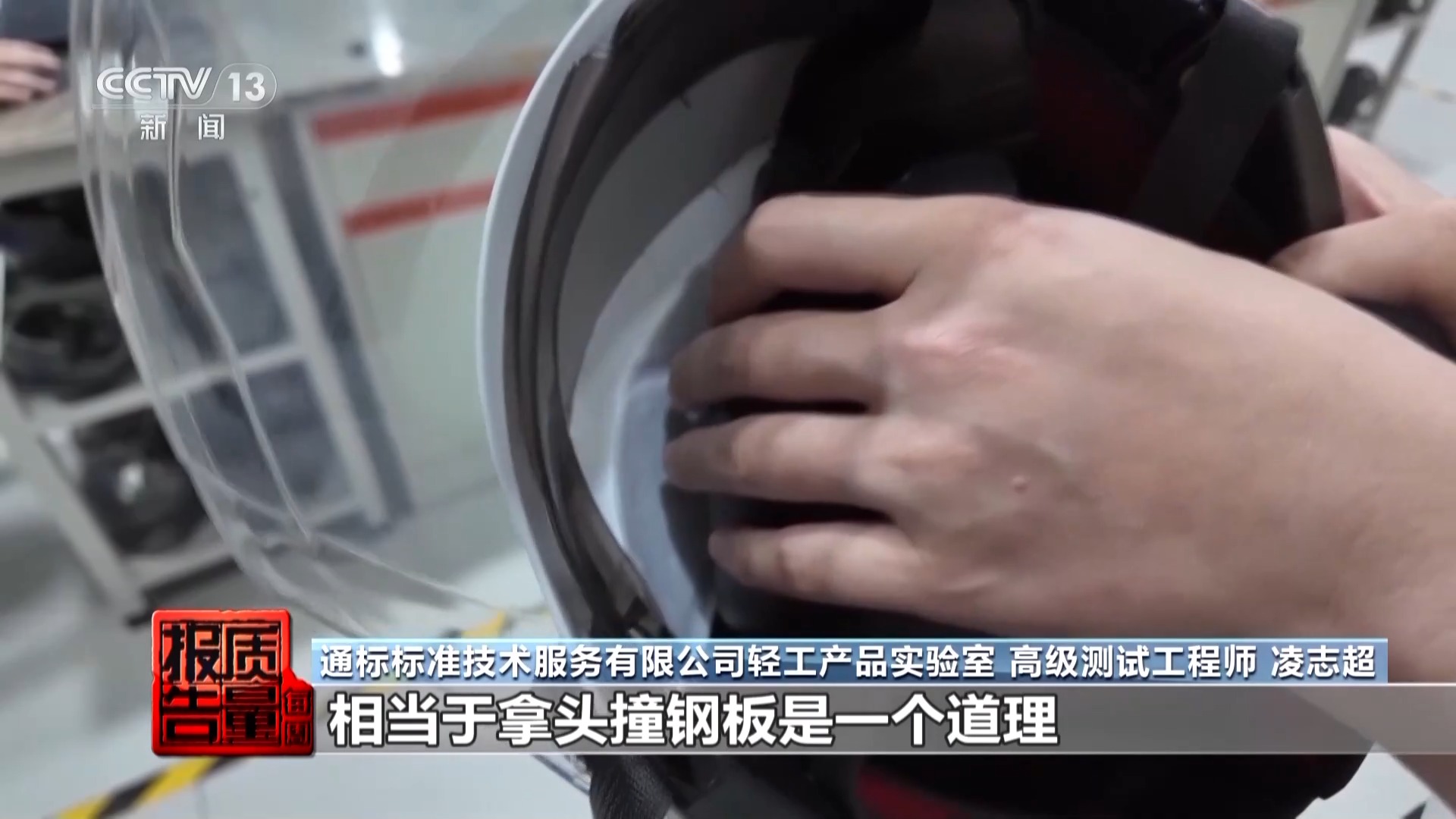通标模范期间干事有限公司轻工居品本质室 物理期间司理 黄永强:要是使用这种头盔出发,万一遇到机敏物品,这个头盔不大概起到保护头部不被机敏物品穿透的作用。
