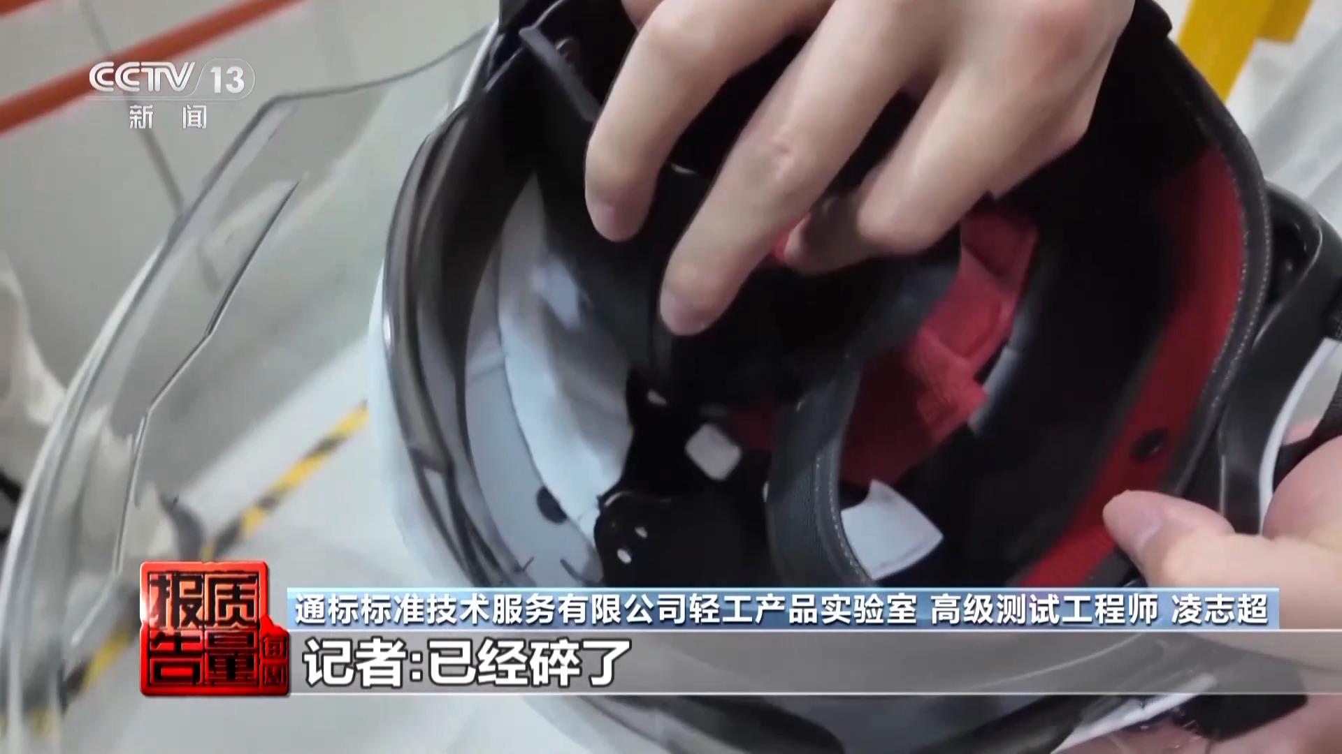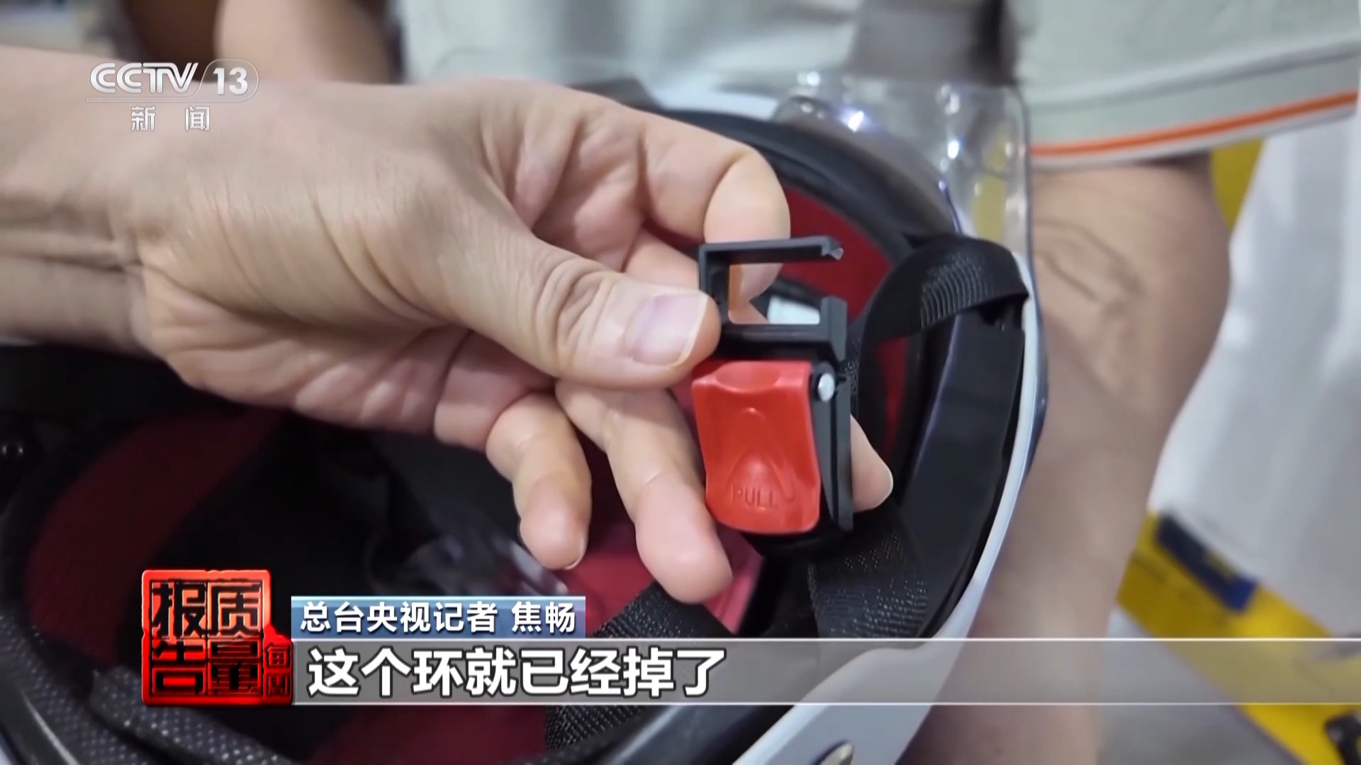 总台央视记者 焦畅:在咱们刚刚进行的清楚性测试标准,其中有一个在莫得测试,仅仅固定它的期间,这个环就还是掉了,另外两个头盔测试的领域是扣袢折了。平淡在指导经过中,要是受到撞击,这个头盔根蒂够不上保护我方的恶果。