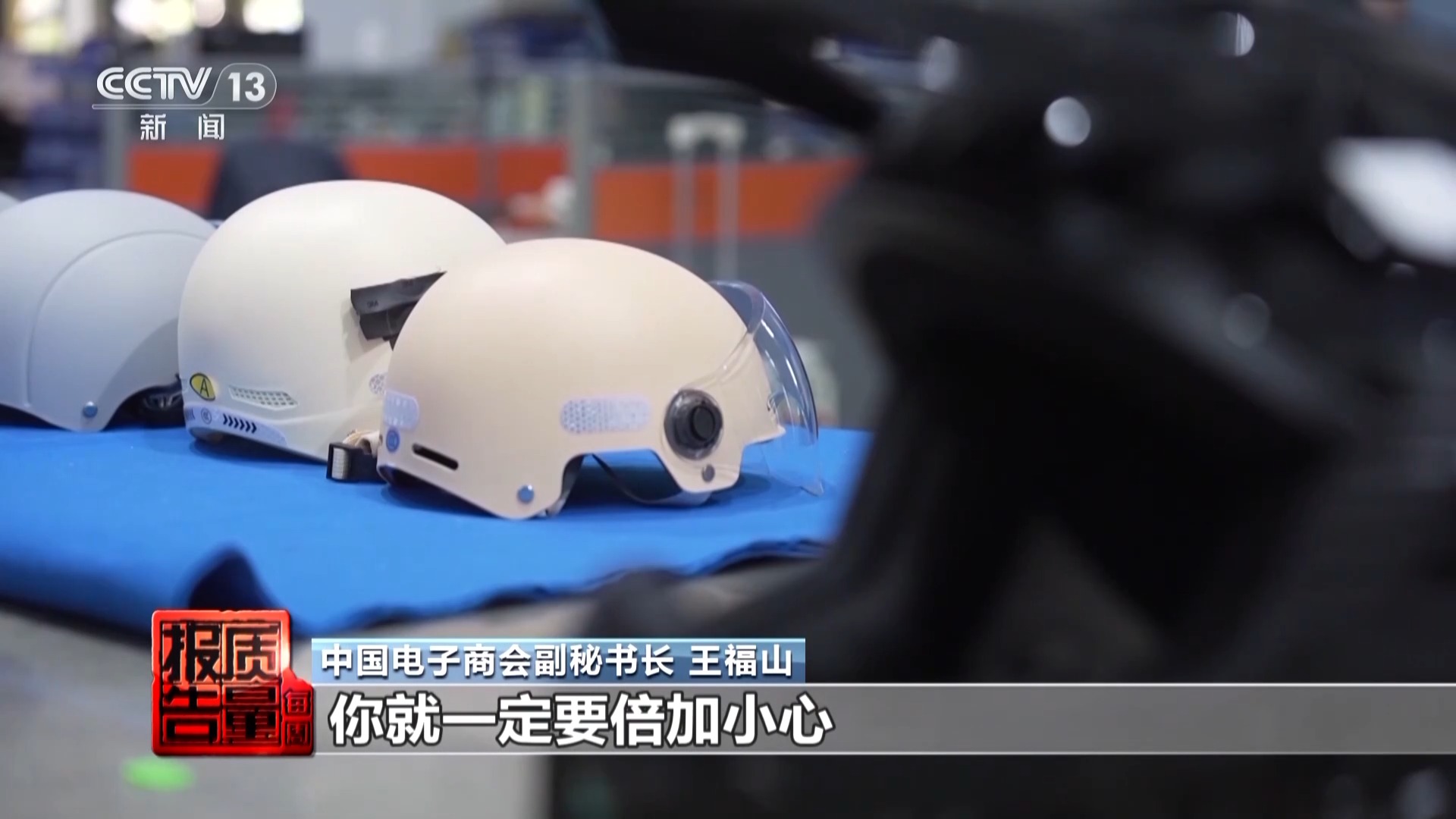 在某电商平台的这个专卖店,销售的电动自行车头盔价钱在20元把握,记者看到,网店推出的商品老师视频里,这款头盔用大锤齐莫得砸坏。