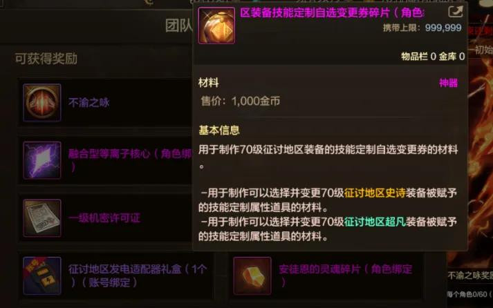 这个碎屑就横暴了,不错制作“定制期间变更券”,2个碎屑=1个史诗变更券,3个碎屑=1个超凡变更券!