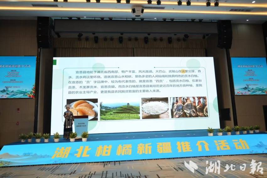湖北日报客户端讯(通信员舒玥)10月21日,宣恩县受邀携宣恩贡水白柚在新疆霍尔果斯投入湖北柑橘新疆推介看成。