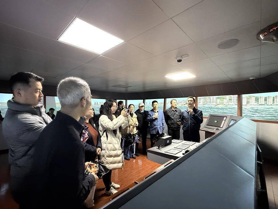 参不雅帆海模拟器,体验船舶模拟驾驶。集好意思大学宣传部供图