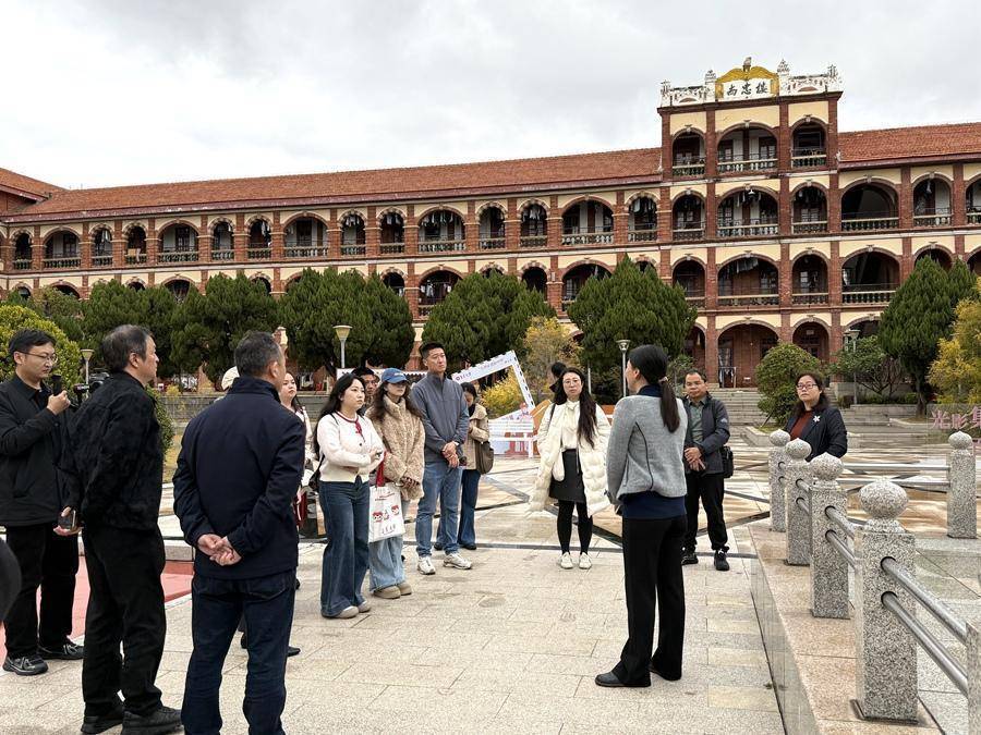 采风团首站参访“白楼”允恭楼。集好意思大学宣传部供图